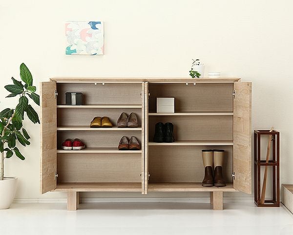 シンプルさとナチュラルさが融合したデザインのシューズボックス。どっしりとしたフォルムで安定感があります。玄関だけでなくリビングボードとしてのご使用も可能です。
