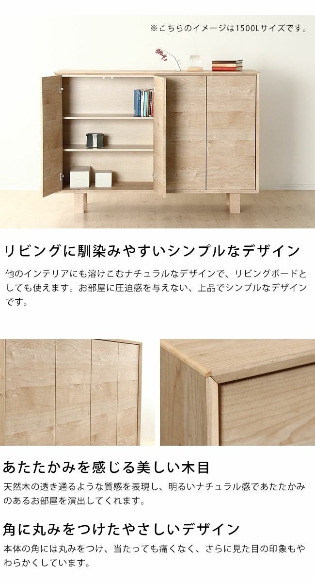 他のインテリアにも溶けこむナチュラルなデザインで、リビングボードとしても使えます。お部屋に圧迫感を与えない、上品でシンプルなデザインです。