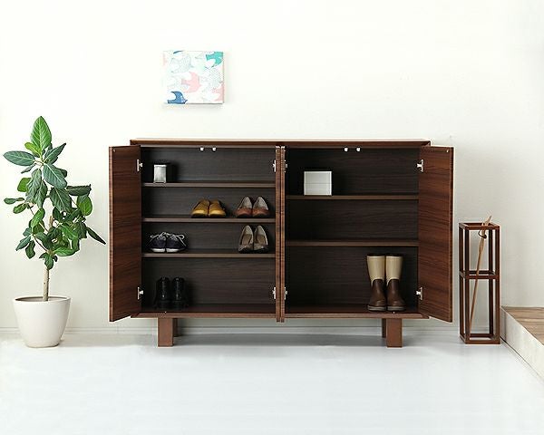 フラットでシンプルな見た目とは裏腹に高い収納力が魅力的です。シューズボックスとしてご使用いただく場合、1200Lは約30足、1500Lは35足、1800Lは約45足をすっきり収納することができます。