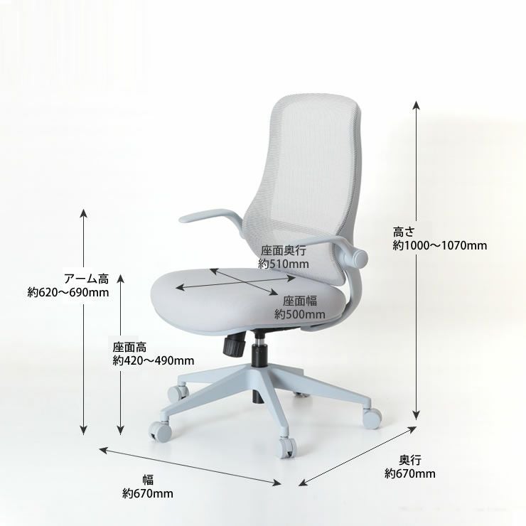 | サイズ | 幅670×奥670×高1000~1070(mm) 座面高:420~490(mm) |
