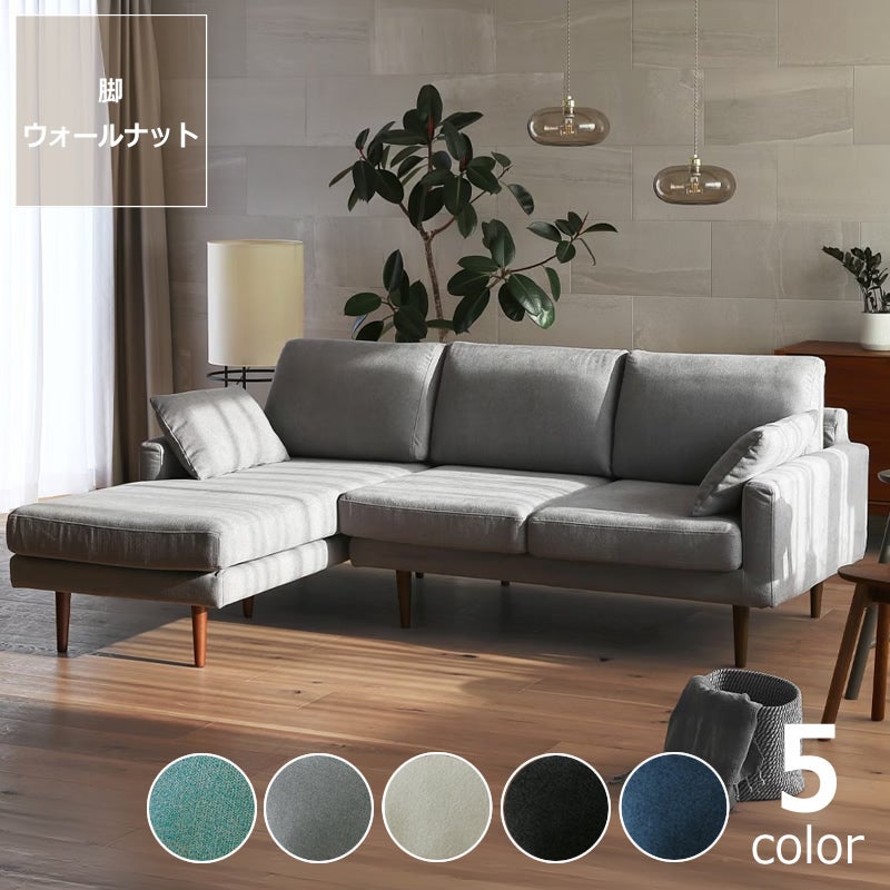 | サイズ | 全体:幅2140×奥1560×高820(mm) 2人掛け:幅1400×奥920×高820(mm) シェーズロング:幅750×奥1560×高820(mm) 座面高:420(mm) 脚の高さ:195mm 付属クッション:幅500×高340(mm) |