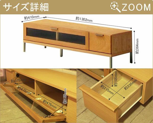 天然木とスチール脚がスタイリッシュなテレビボード
