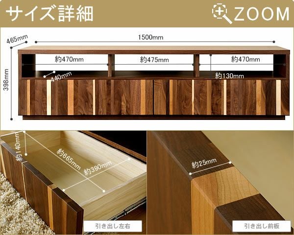 | サイズ | 幅1500×奥465×高398(mm) AV収納(3ヶ所):幅470~475×奥440×高130(mm) |