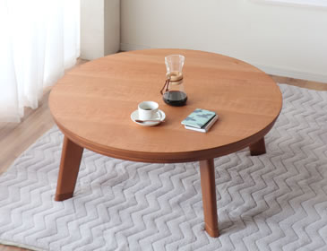 【国産】ちゃぶ台こたつ直径が120cmと大きめなので、家族みんなで囲んで「だんらん」できる、折れ脚式のちゃぶ台こたつ。天然木の木目が綺麗で、高級感のある風合いです。ウォールナット材、ナラ材の2種類からお選びいただけます。