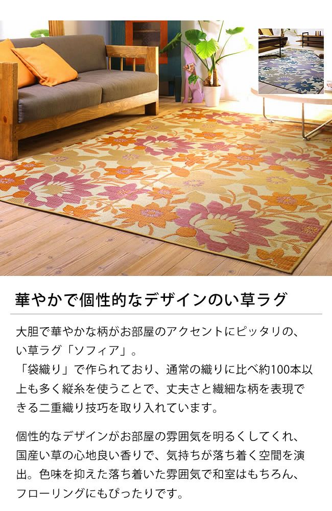 【国産】い草 ラグ い草花ござ い草カーペット「葵」