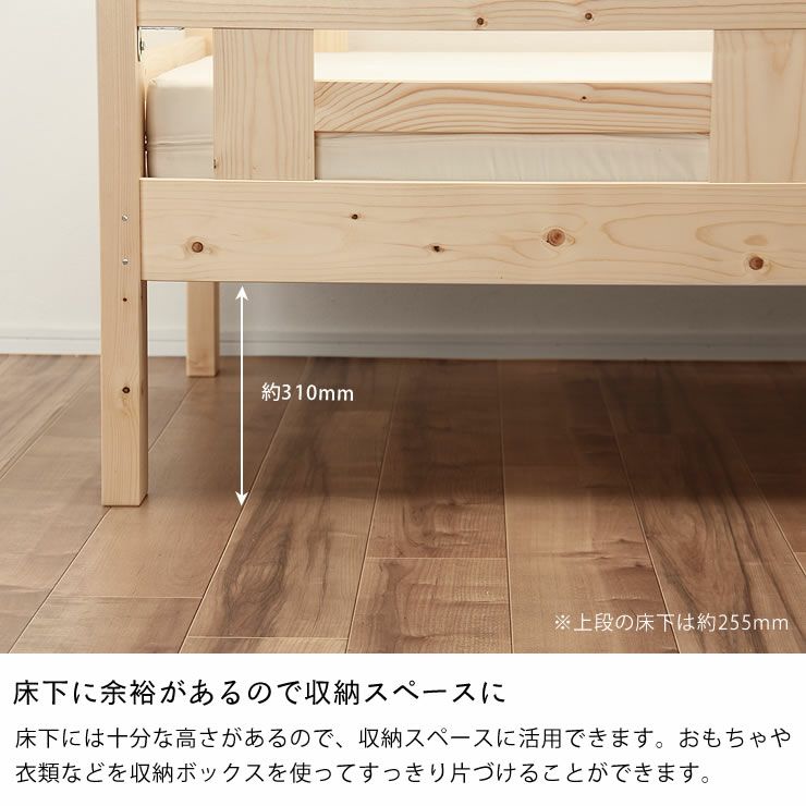床高を変えられるナチュラルな無塗装の国産ひのき2段ベッド/二段ベッド