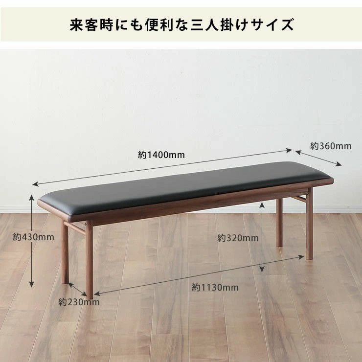 木の温もりを感じるシンプルなダイニングベンチ 140cm幅